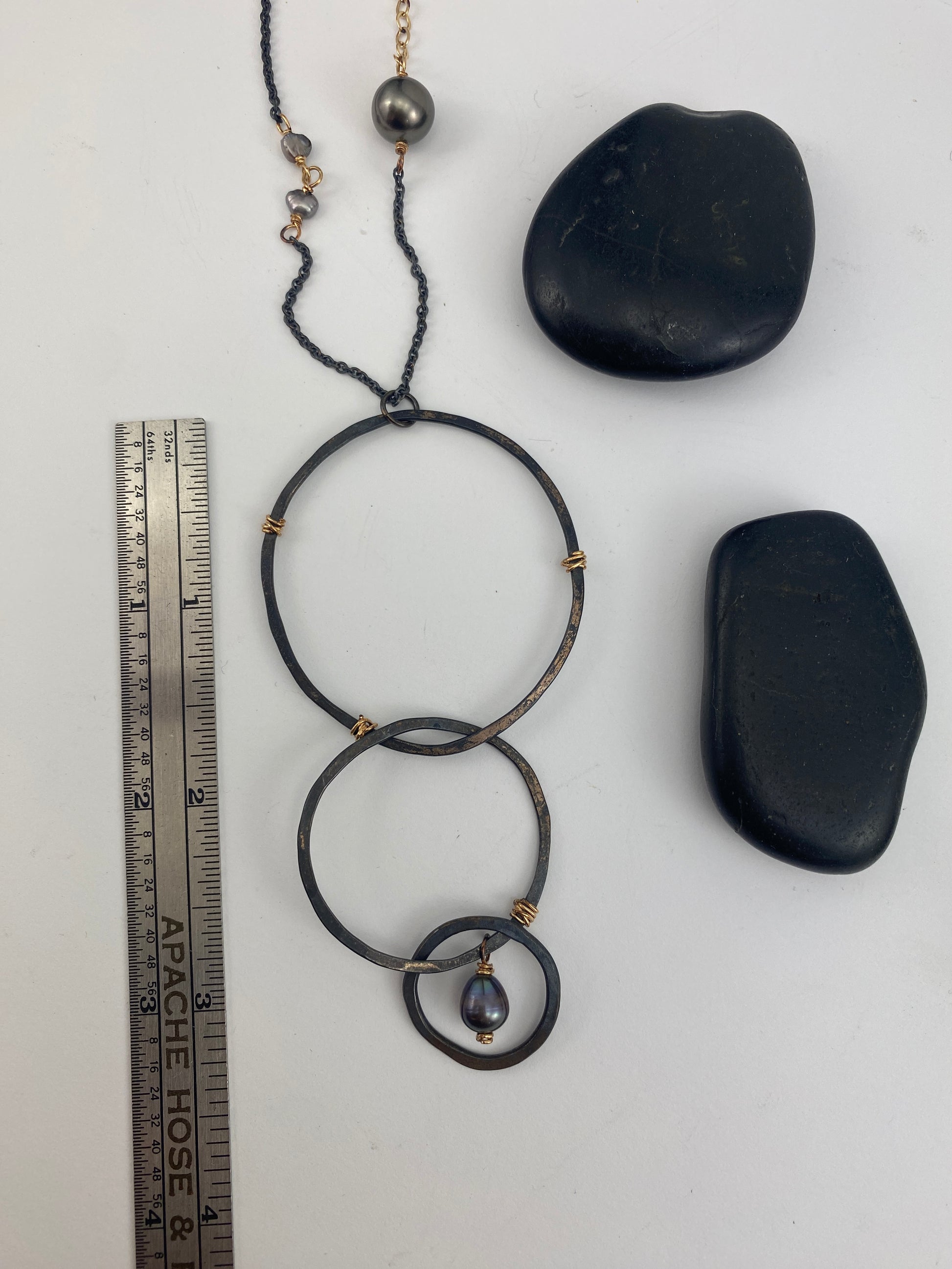 Care Instructions: To preserve the radiant beauty of your Rachel Dawn Designs jewelry, gently clean with a soft, damp cloth. Avoid contact with harsh chemicals, perfumes, and cosmetics. Store in a dry place, away from direct sunlight, when not in use to protect the pearls and mixed metals. Due to the oxidized finish, avoid harsh abrasives to maintain its unique patina.