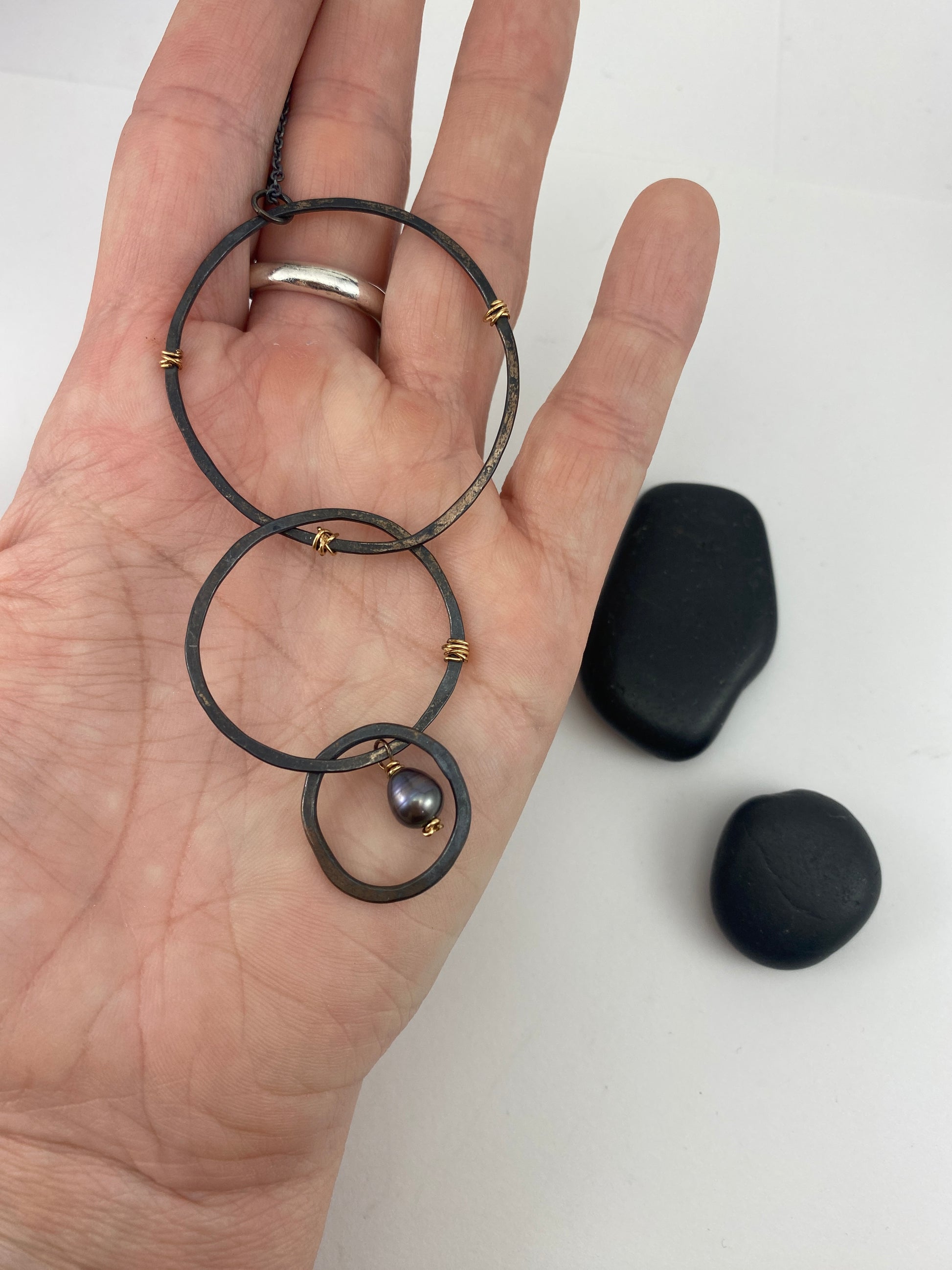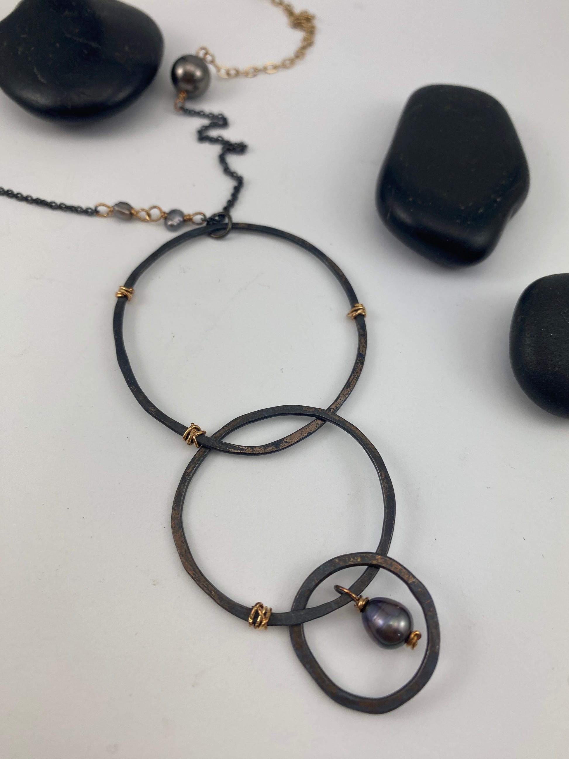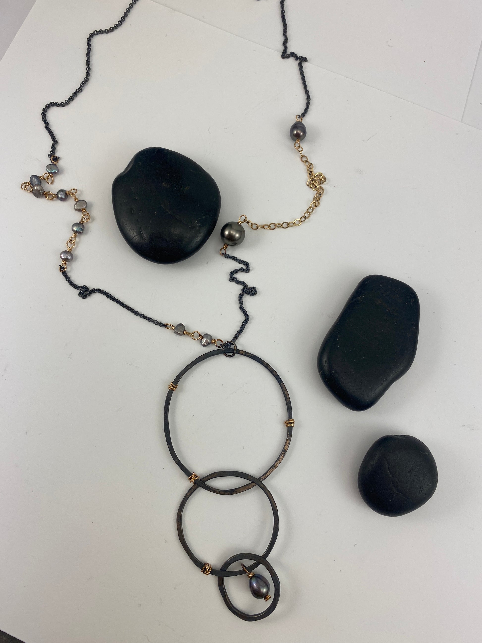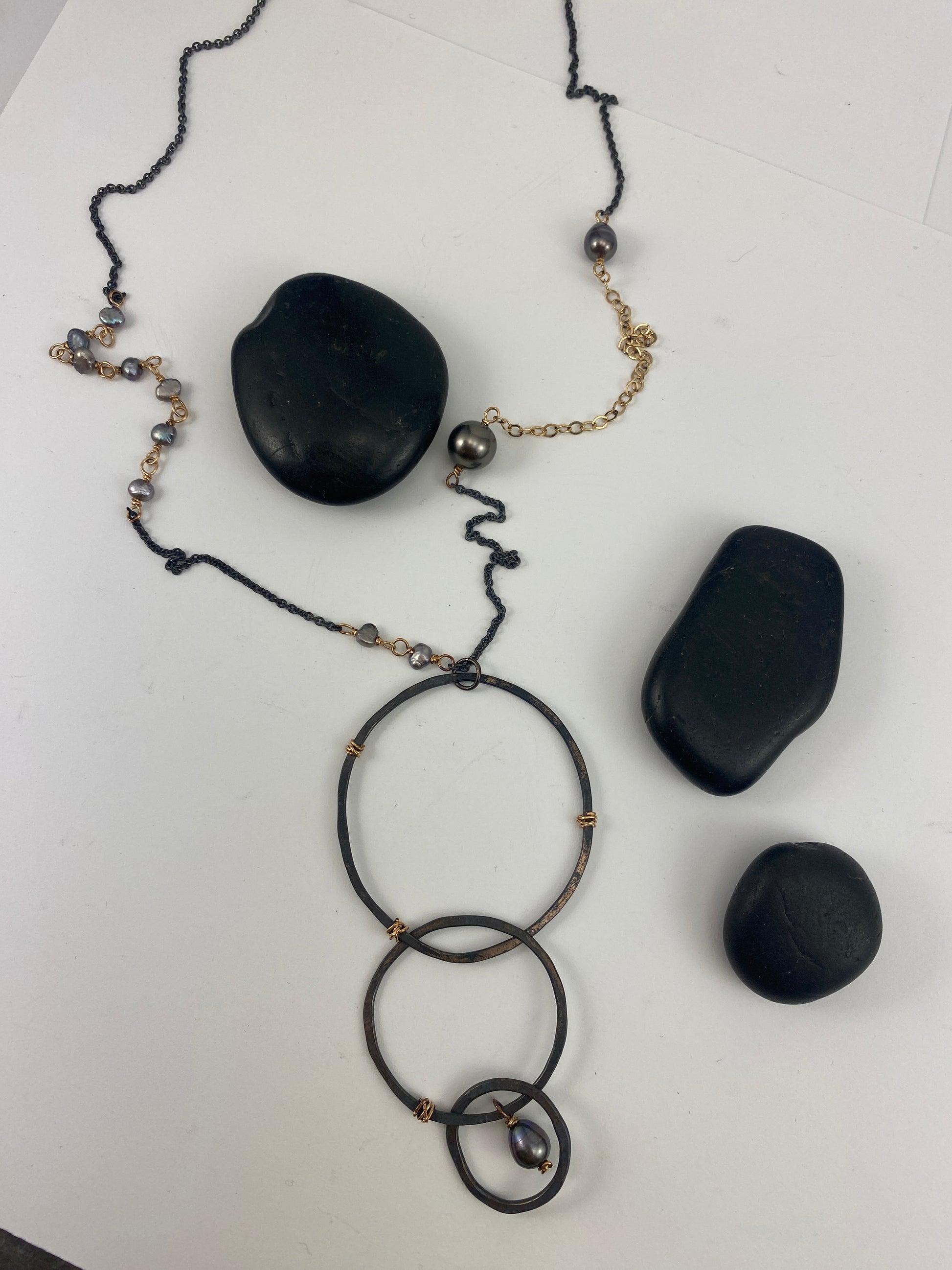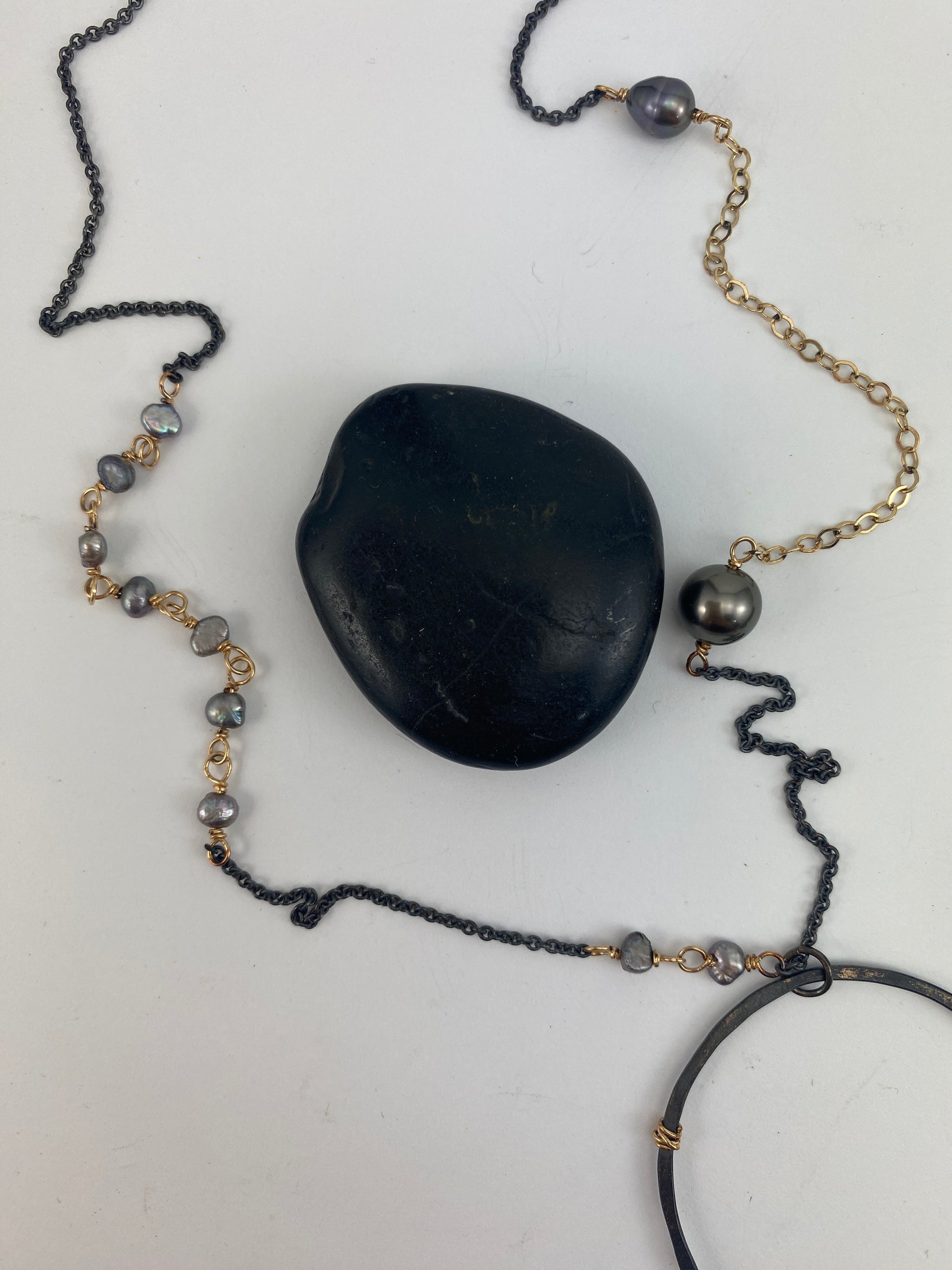 Boho interlocking Necklace with Tahitian & Freshwater Pearls