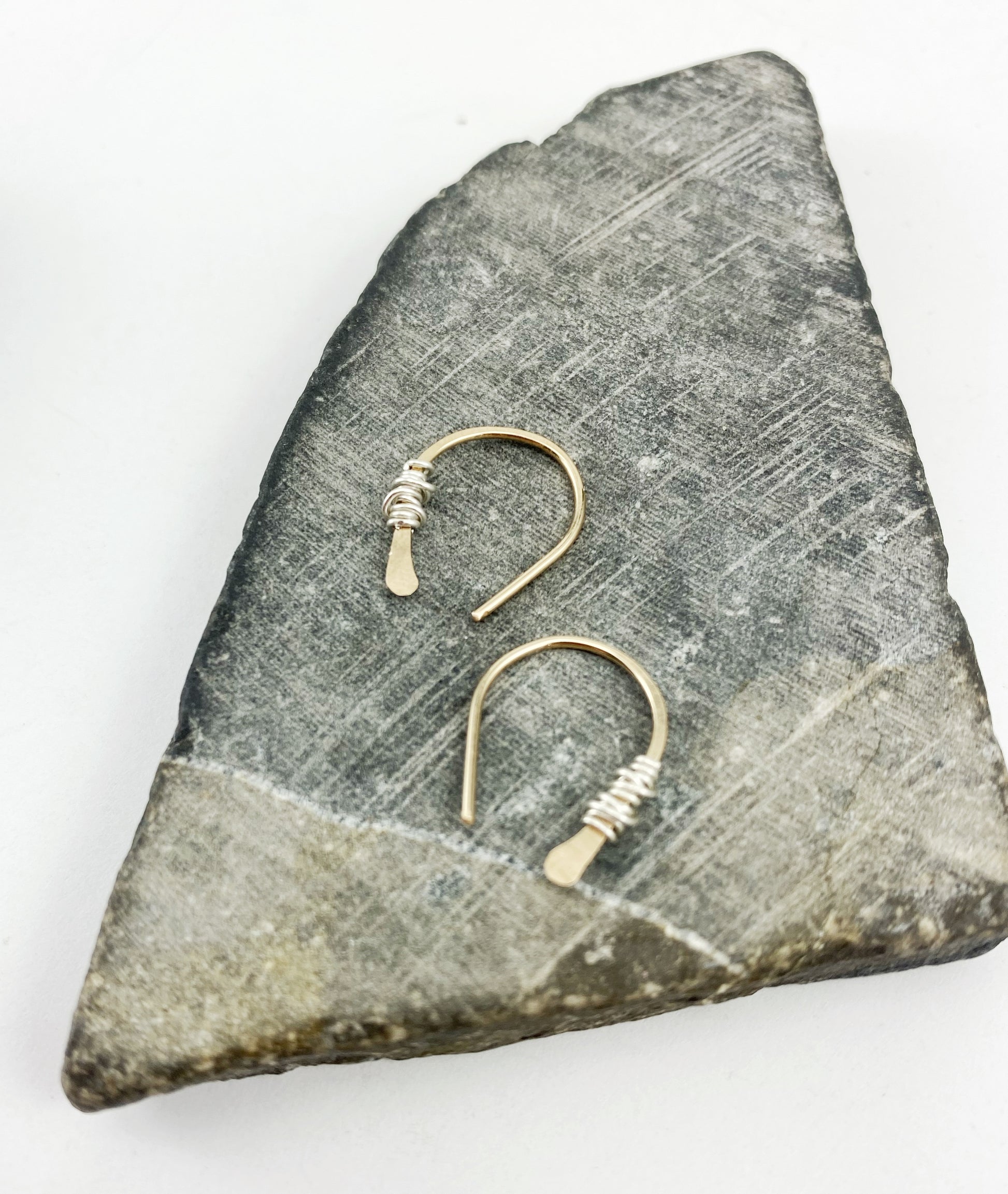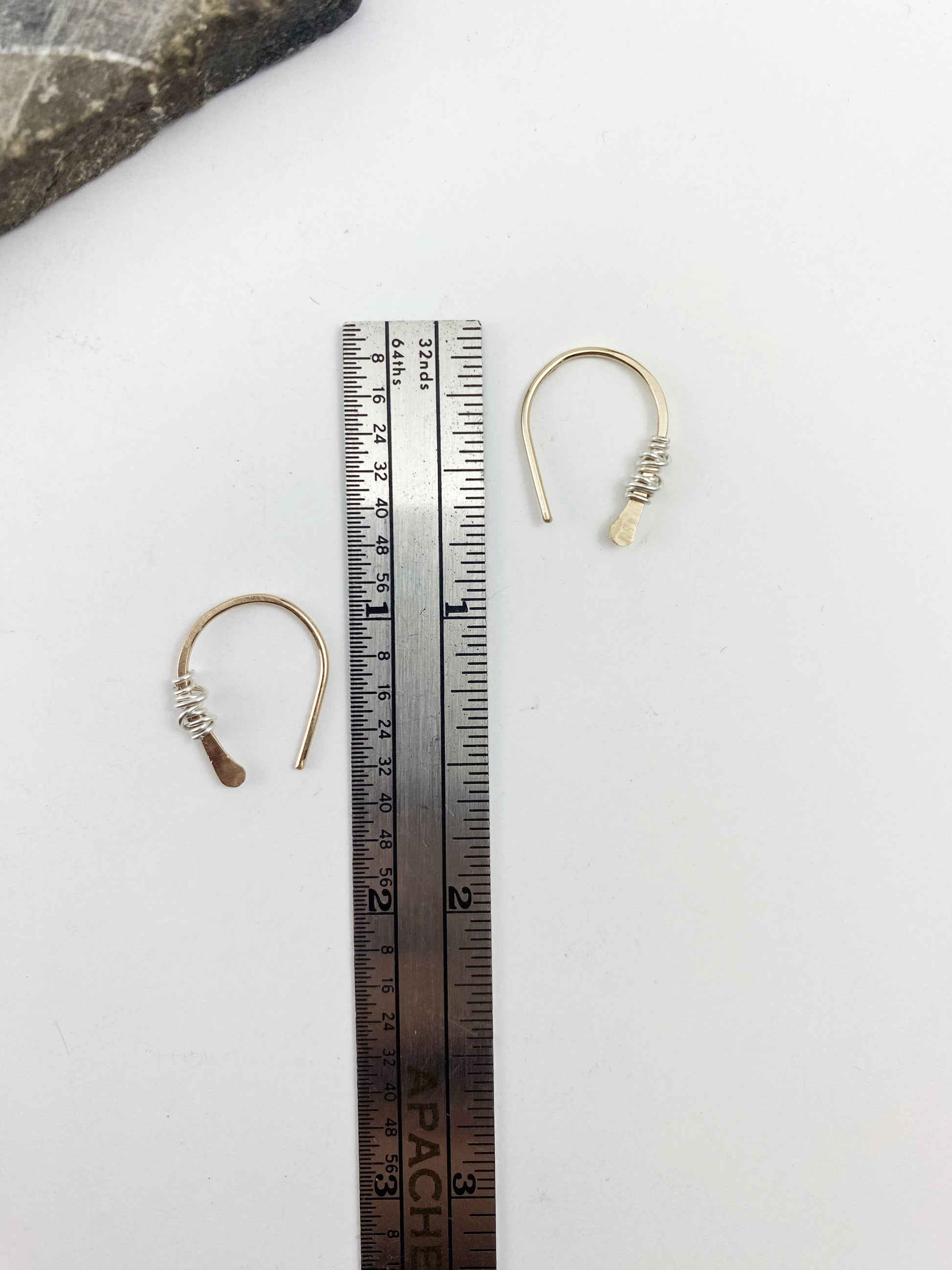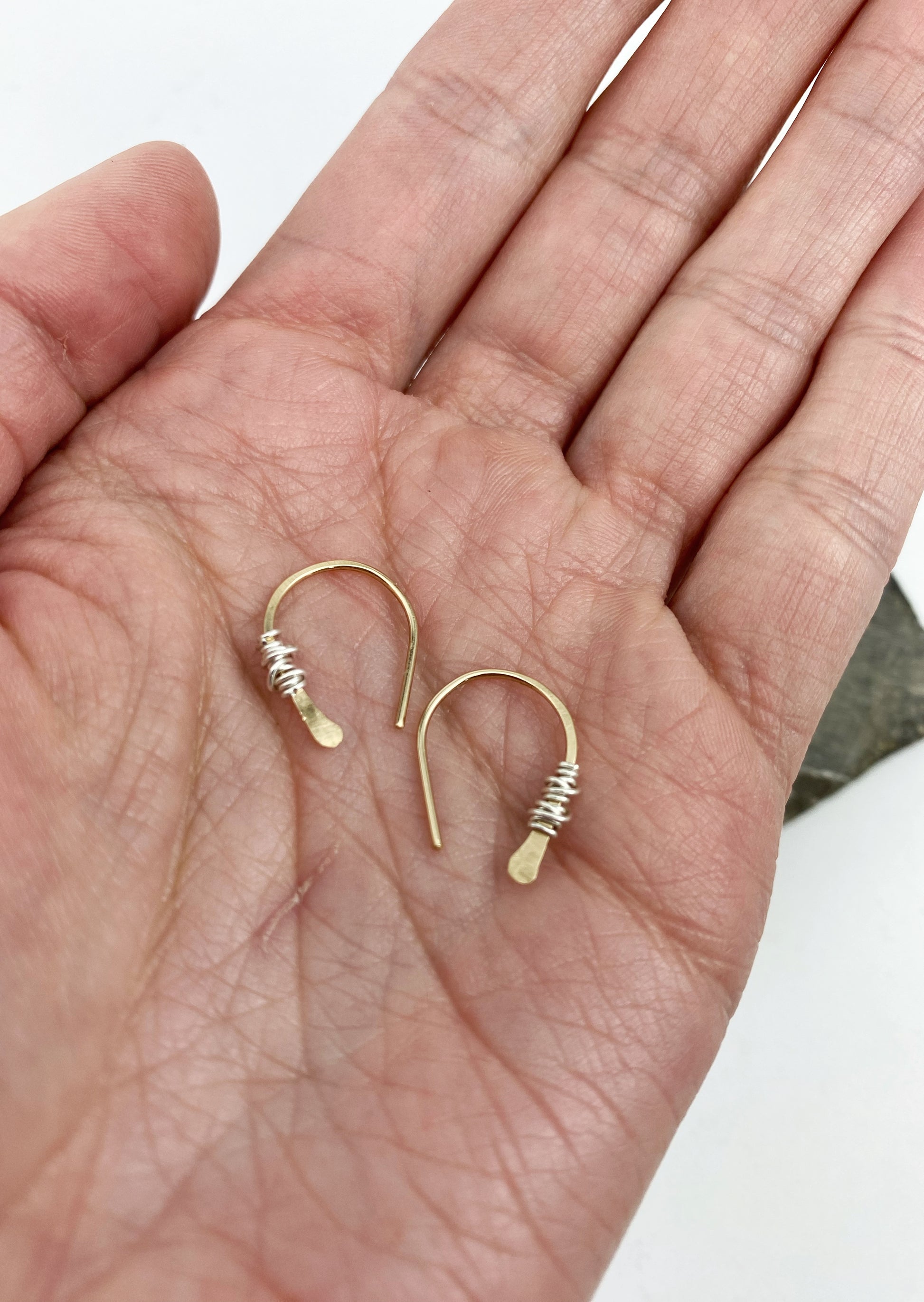 Gold Horseshoe Threader with Silver Wrap | Huggie Hoops | Dainty Earrings | Tiny Earrings | Small Boho Earrings | Mini Earrings | Open Hoop | Horseshoe Earrings