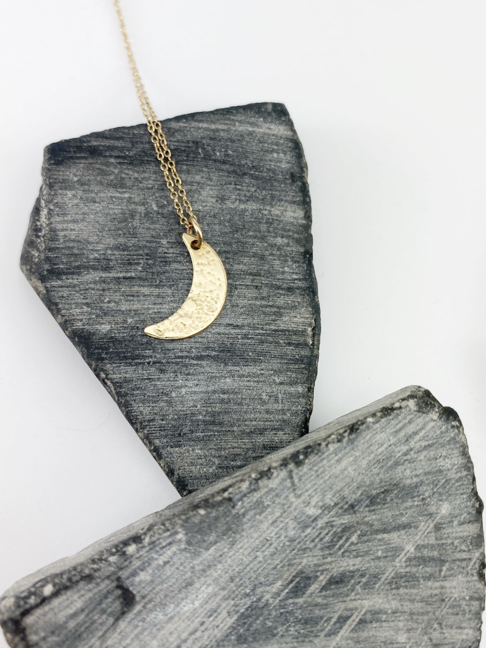Lace Moon Necklace: This delicate necklace, with its intricate lace texture (imprinted with my great-grandmother’s hand-tatted lace ), hangs on a 16” chain.