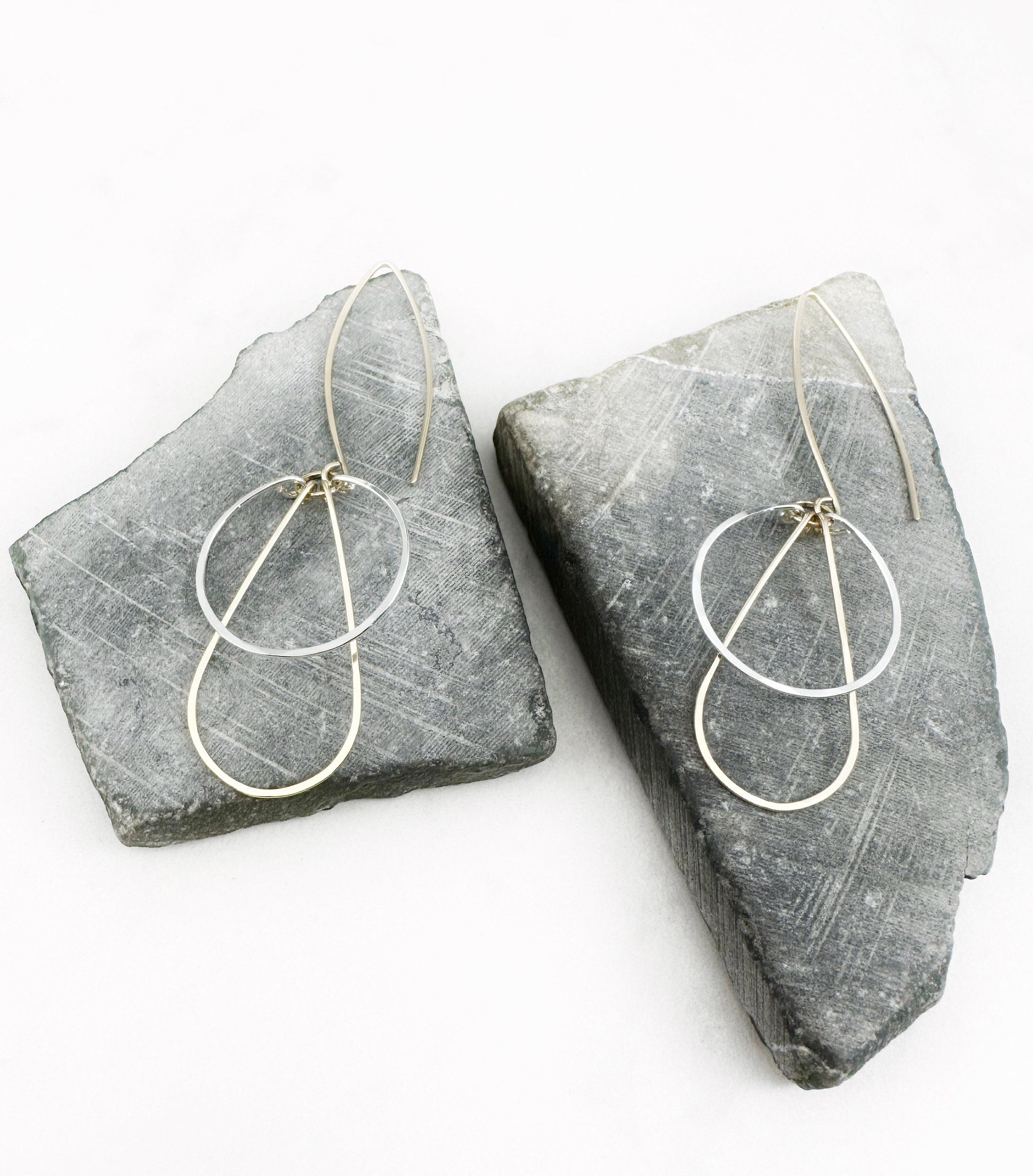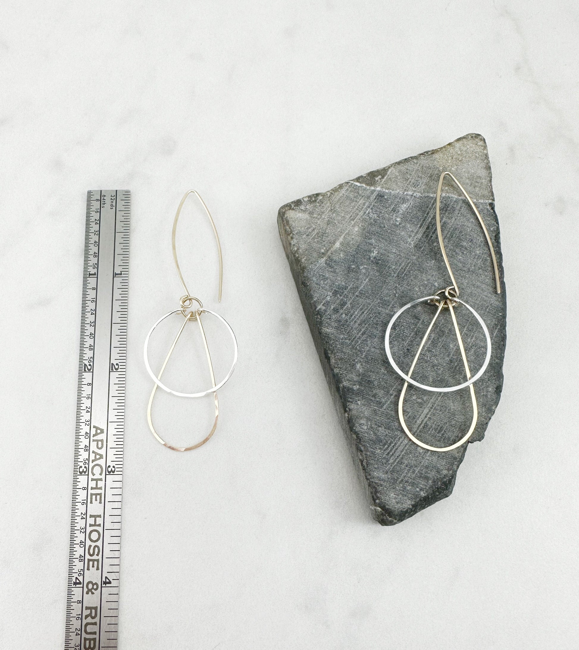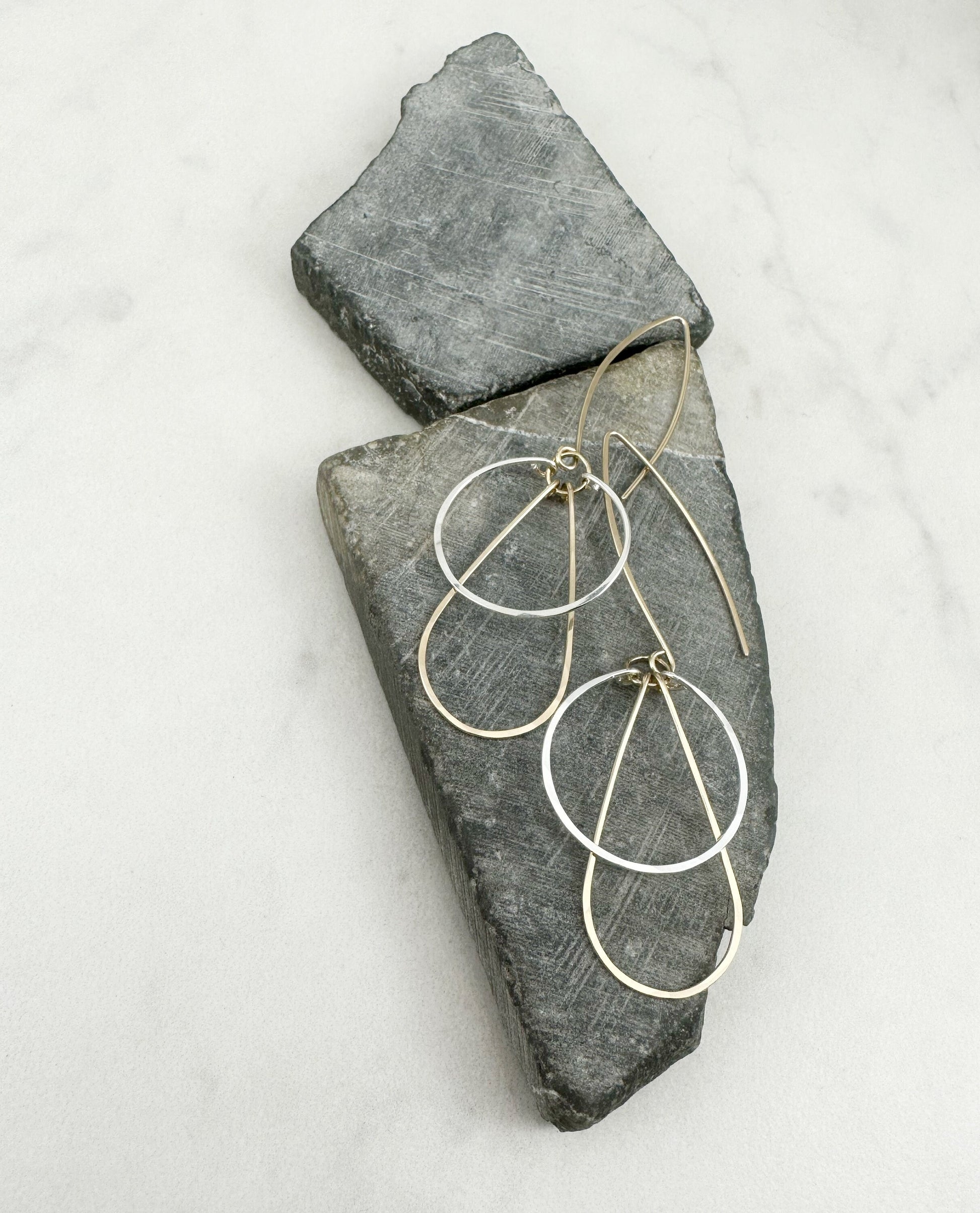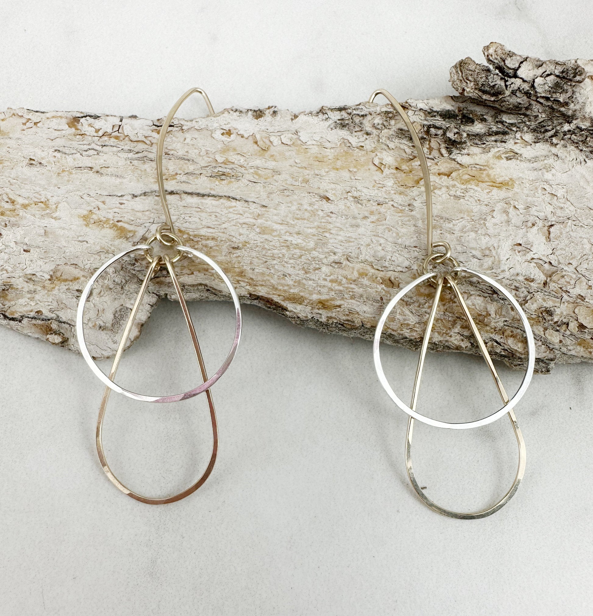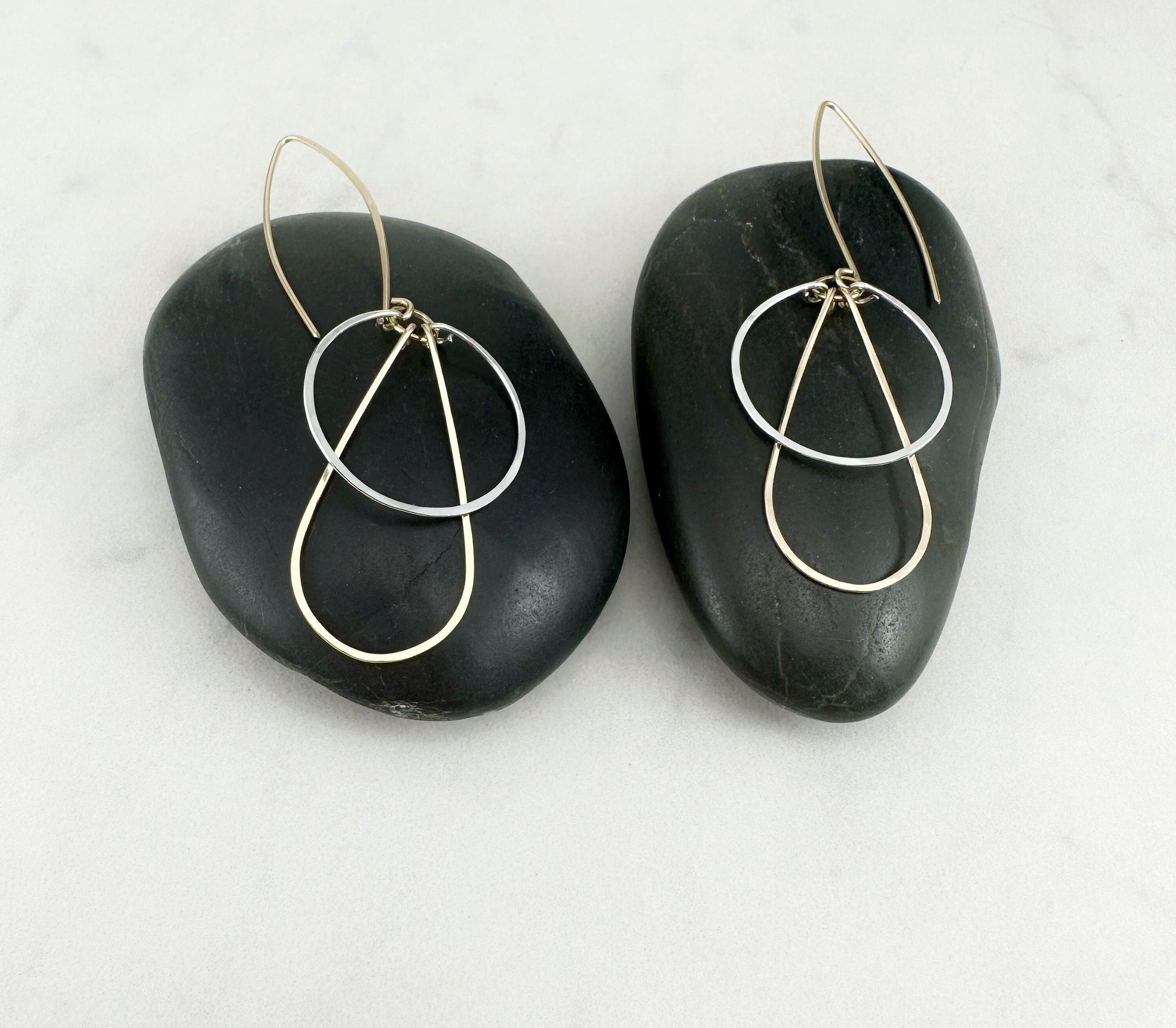 Mixed Metal Art Deco Hoops | Mixed Metal Earrings | Silver and Gold Earrings | Teardrop Earrings | Geometric Earrings | Statement Earrings | Hammered Hoops