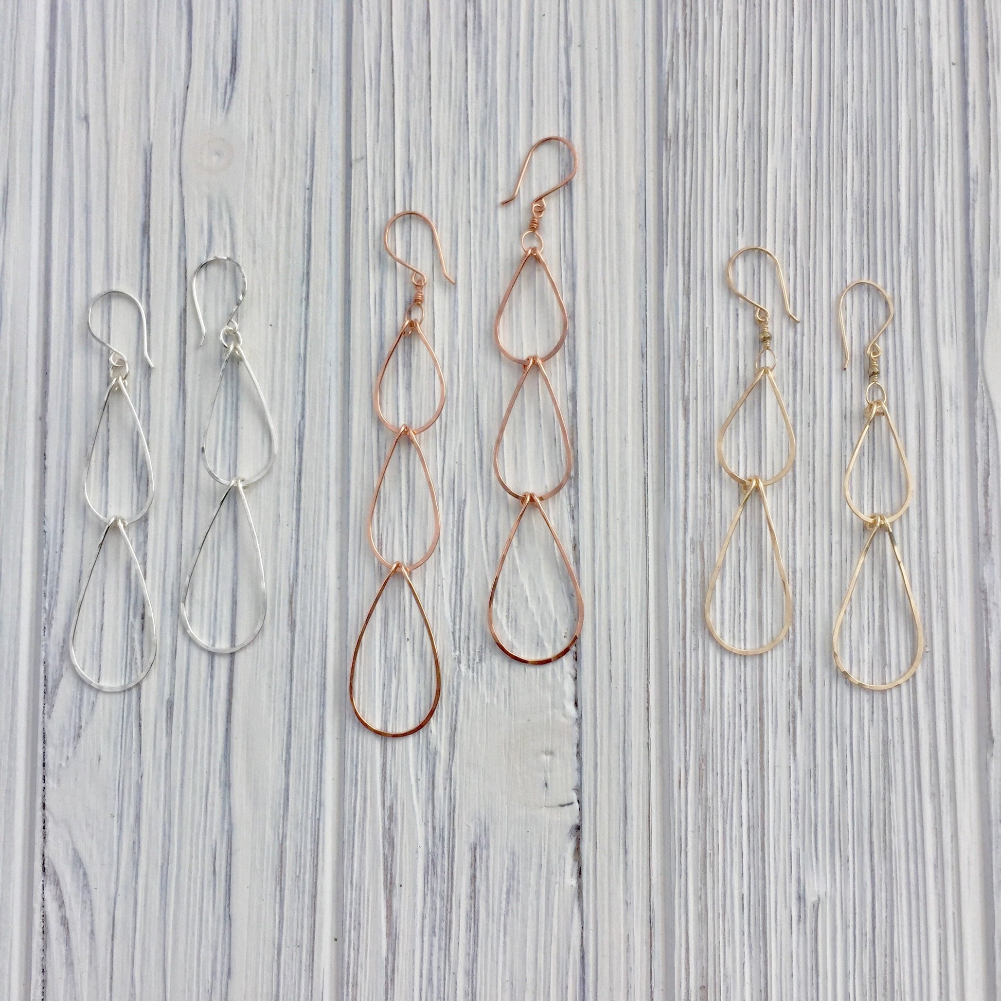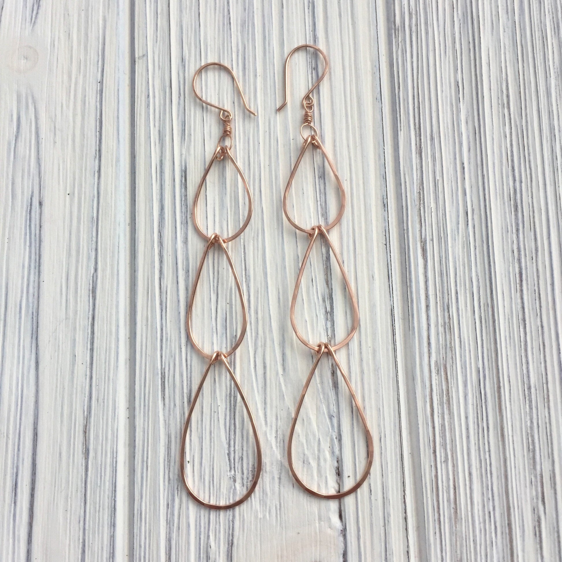 Rose Gold Triple Teardrop Earrings | Waterfall Earrings | Rose Gold Boho Earrings | Teardrop Earrings | Open Teardrops | Lightweight Earrings | Statement Earrings