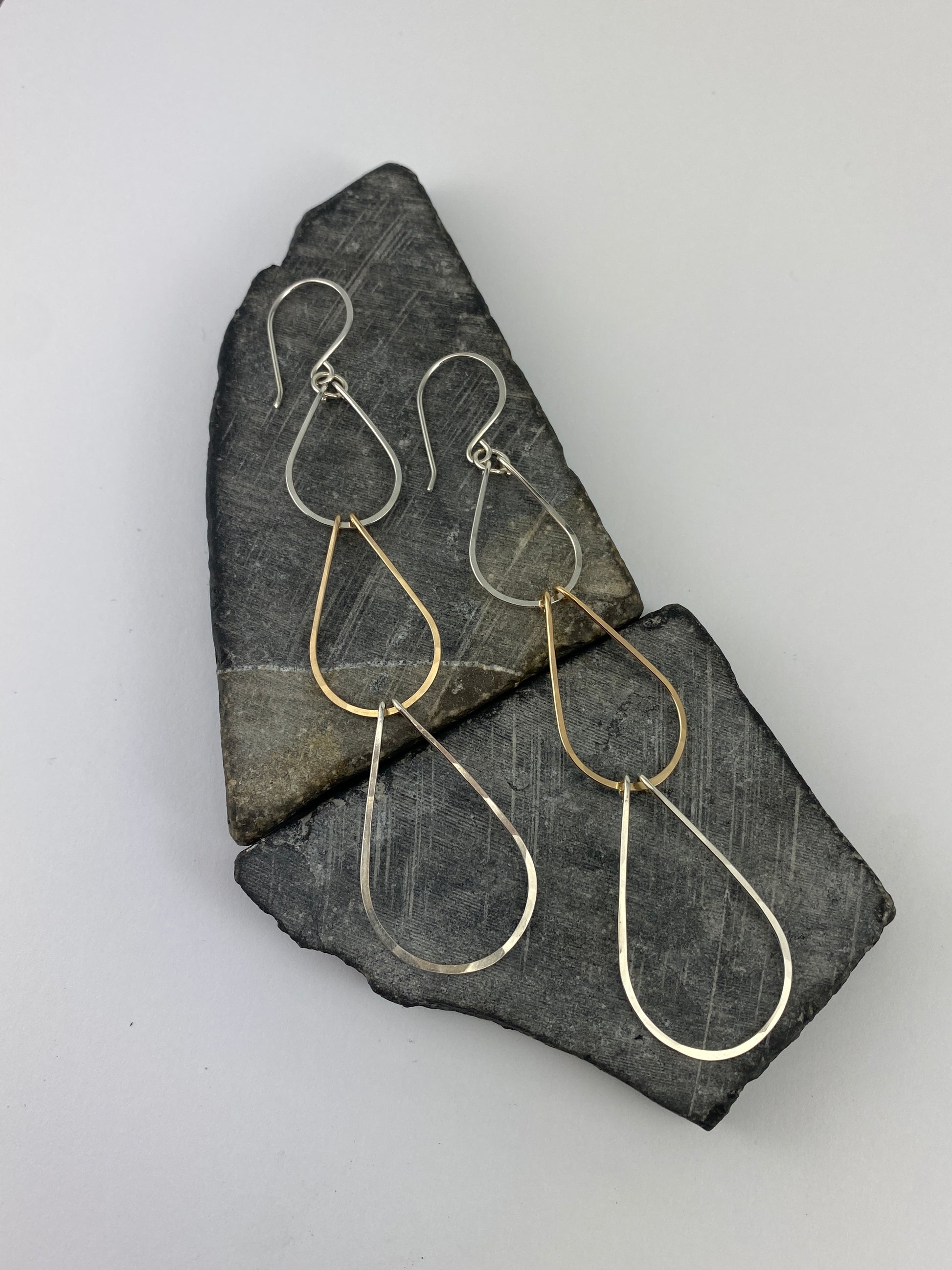 Silver and Gold Triple Teardrop Earrings | Waterfall Earrings | Mixed Metal Boho Earrings | Sterling Silver | 14 K Gold Fill