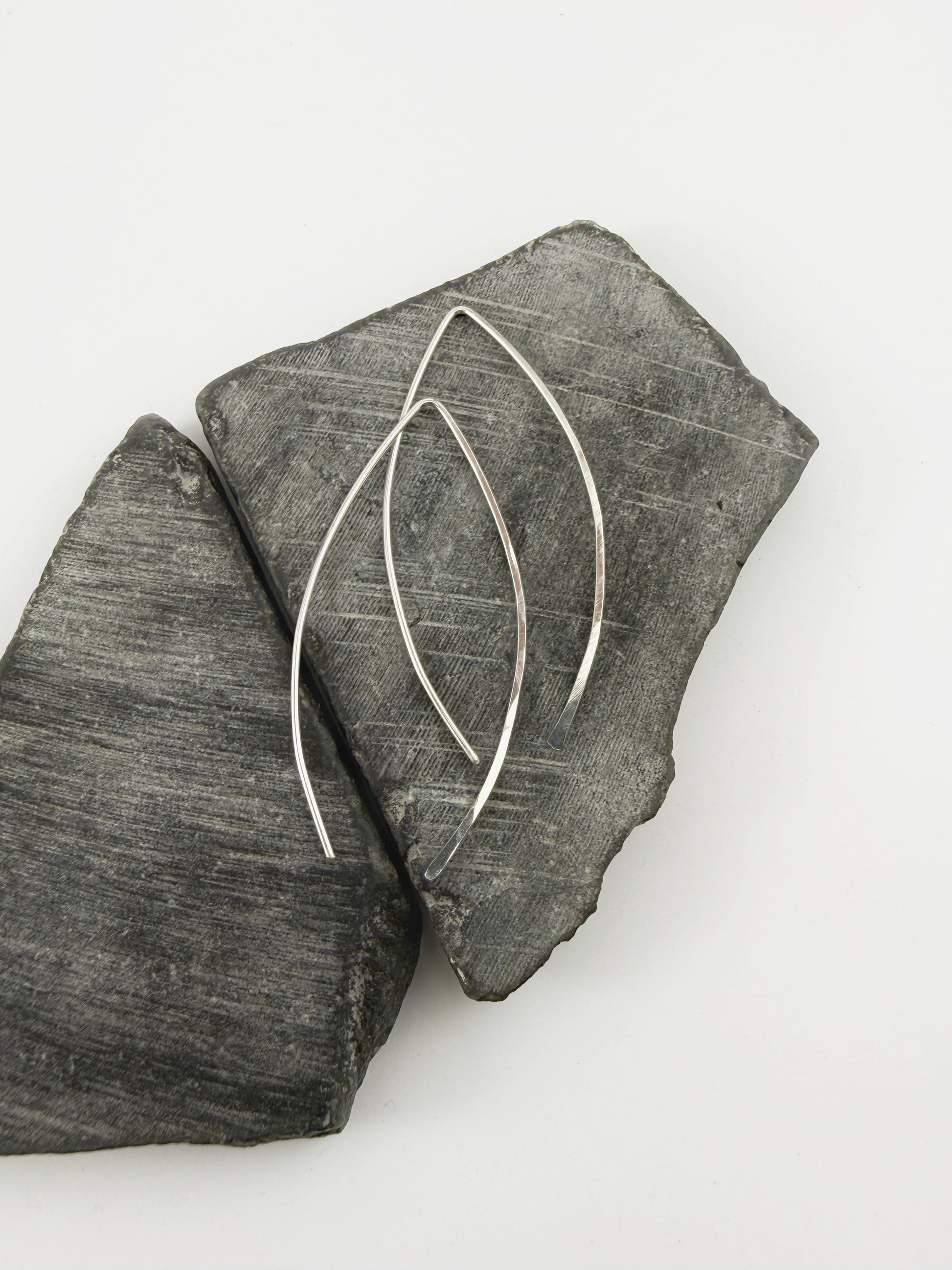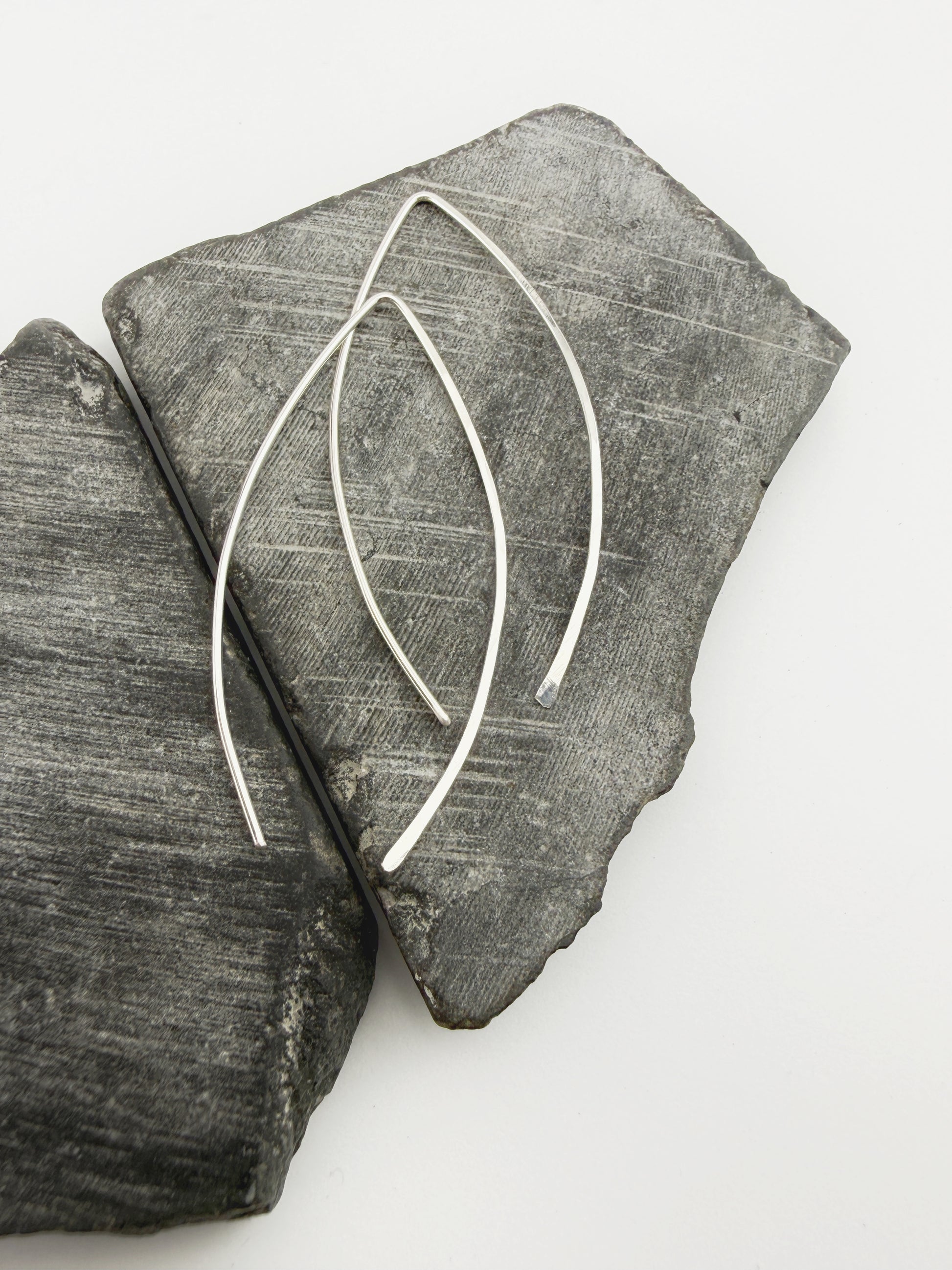 Sterling Silver Marquis Threader Earrings | Arc Earrings | Boho Threaders | Sterling Silver Pull Through Earrings | Handmade Hammered Earrings