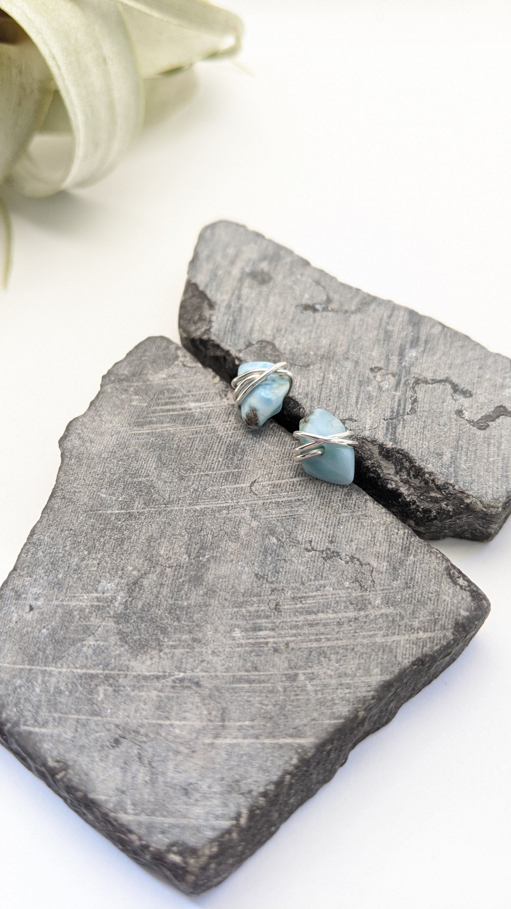 Silver Wrapped Larimar Stud Earrings | Boho Studs | Gemstone Posts | Dainty Earrings | Minimalist Earrings | Crystal Earrings | Healing Crystals